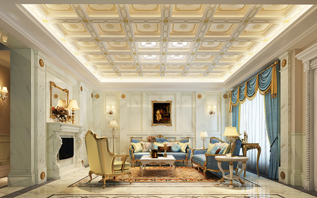 其設計理念來源于梵蒂岡的圣彼得大教堂穹窿頂,尤其是其巨大的圓形穹頂脊線有序排布的雕刻,錯落排列的方格;而最核心的客廳頂產品設計理念則來源于米開朗基羅設計的雙重圓頂,在雕刻精美的吊頂板之下設計一圈鏤空的光帶,讓光線自由發(fā)散,用光線來烘托板面的精致細膩,營造如夢似幻的空間氛圍。并借鑒其井字結構的裝飾方式,在天花吊頂領域引入腰線裝飾的概念,以腰線做架構,營造空間氣勢,突顯細節(jié)的精致與非凡的格調。